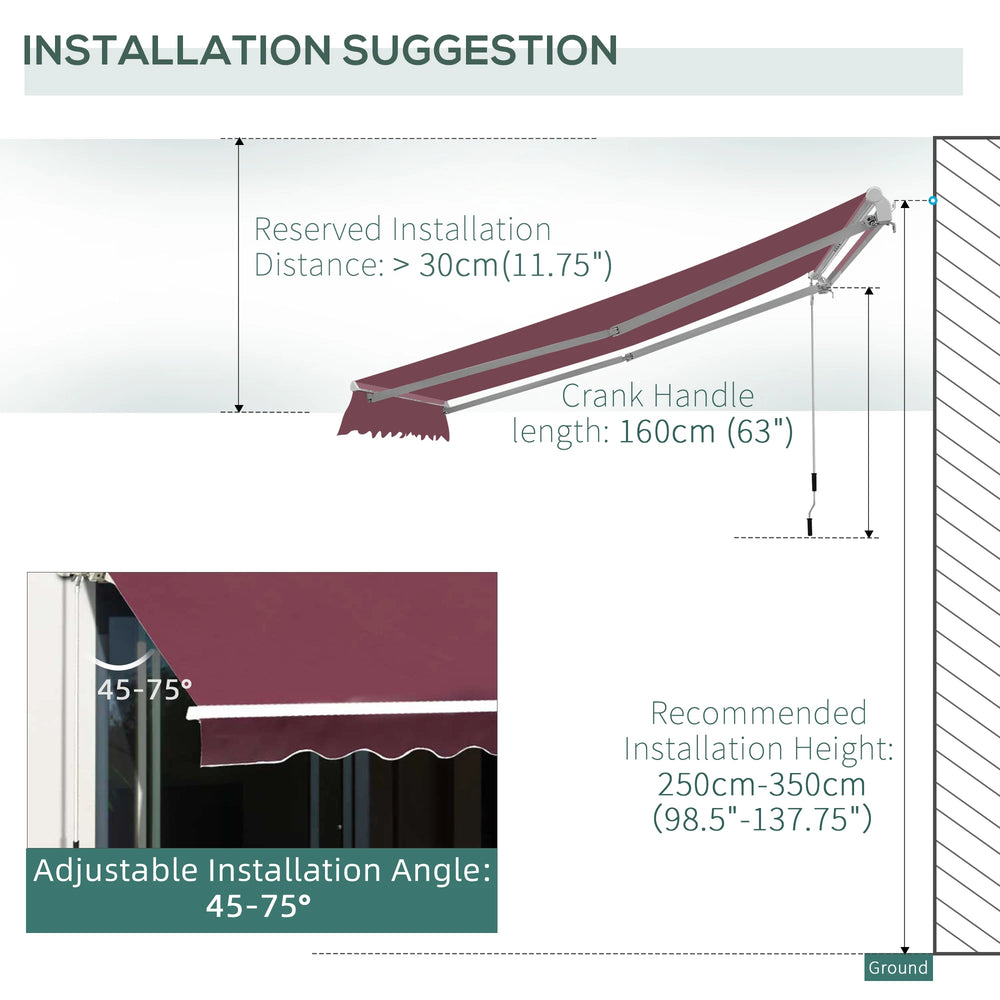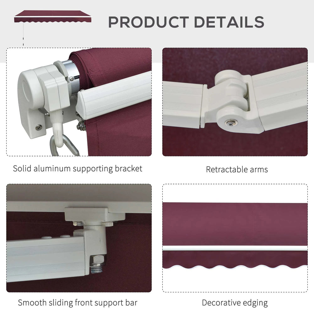Outsunny Manual Retractable Awning, 3x2.5 m-Red