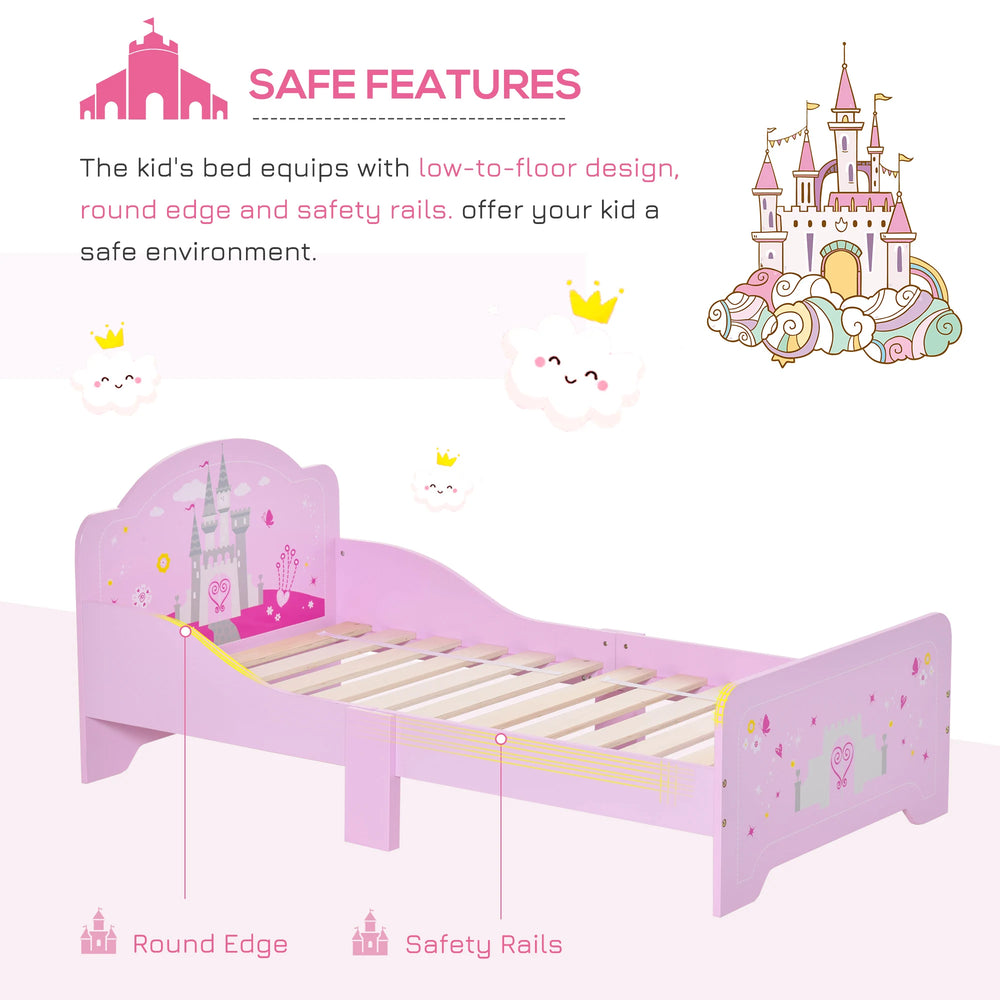 HOMCOM Kids Bed Princess Castle Theme w/ Side Rails Slats Home Furniture for 3 - 6 Yrs Pink 143 x 73 x 60 cm