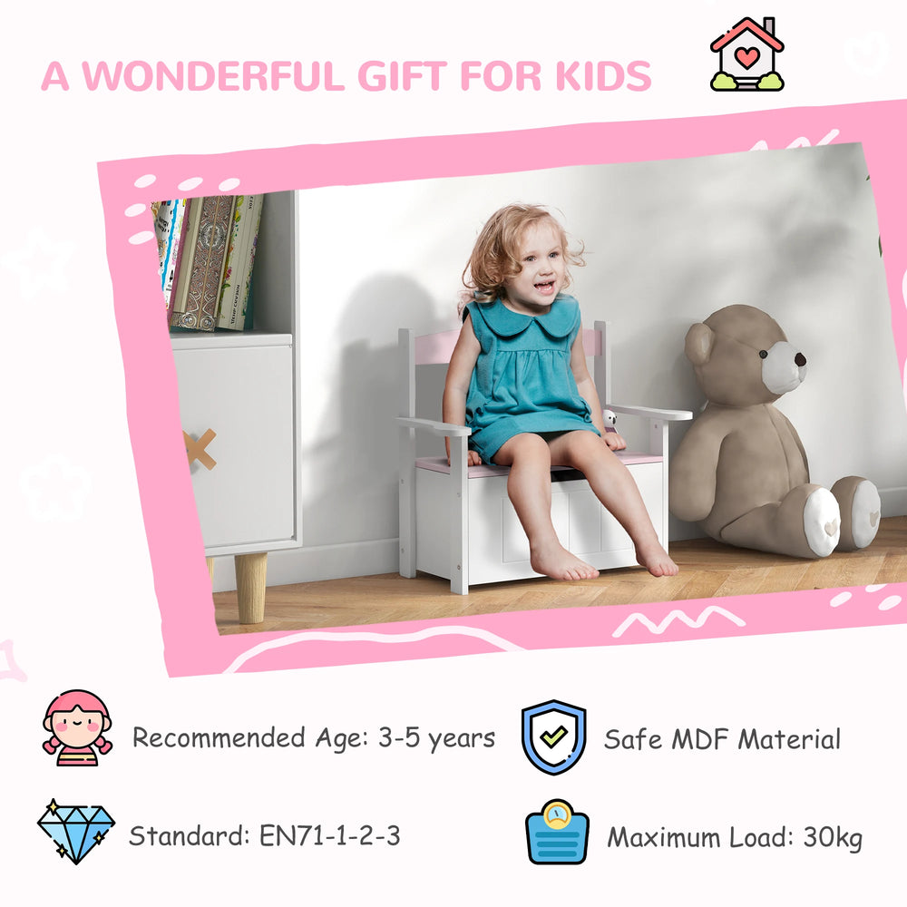 AIYAPLAY 2-in-1 Toy Box for Kids with Lid for Bedroom, Nursery, Playroom, Pink