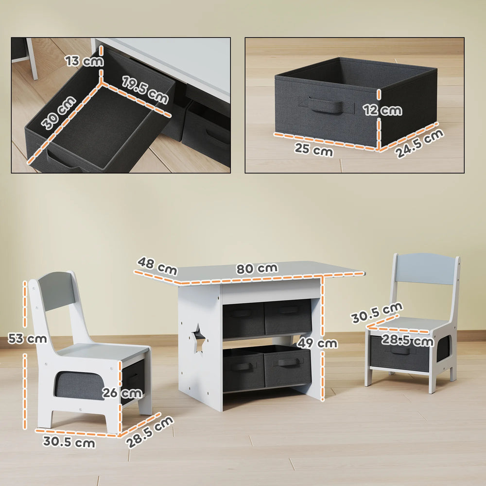 AIYAPLAY Kids Table and Chair Set, Toddler Table and 2 Chairs Set with 6 Removable Drawers, for Boys Girls Ages 3-8, Light Grey