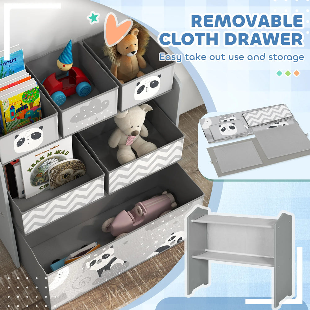 ZONEKIZ Kids Table and Chairs, Kids Storage Unit and Kids Easel Set, Cute Animal Design Kids Activity Furniture Set for Ages 3-8 Years, Grey