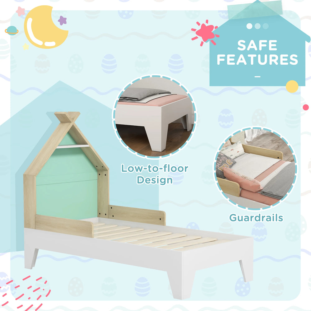 AIYAPLAY Toddler Bed Frame Treehouse Style, Single Bed Frame with Safety Guardrails, Green