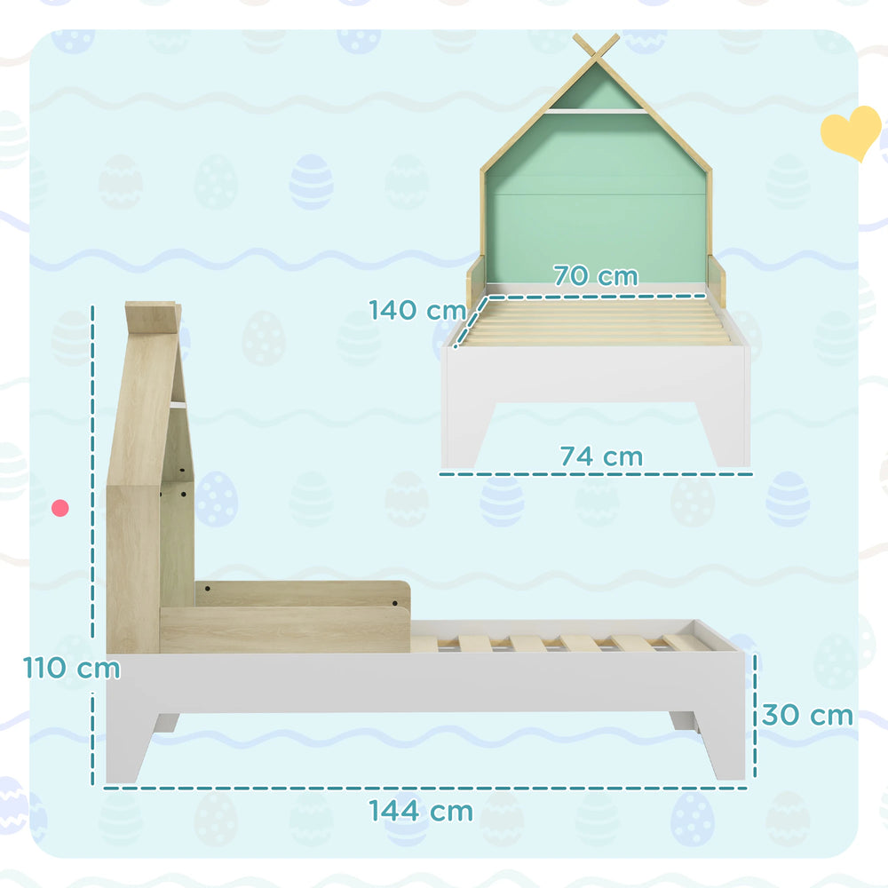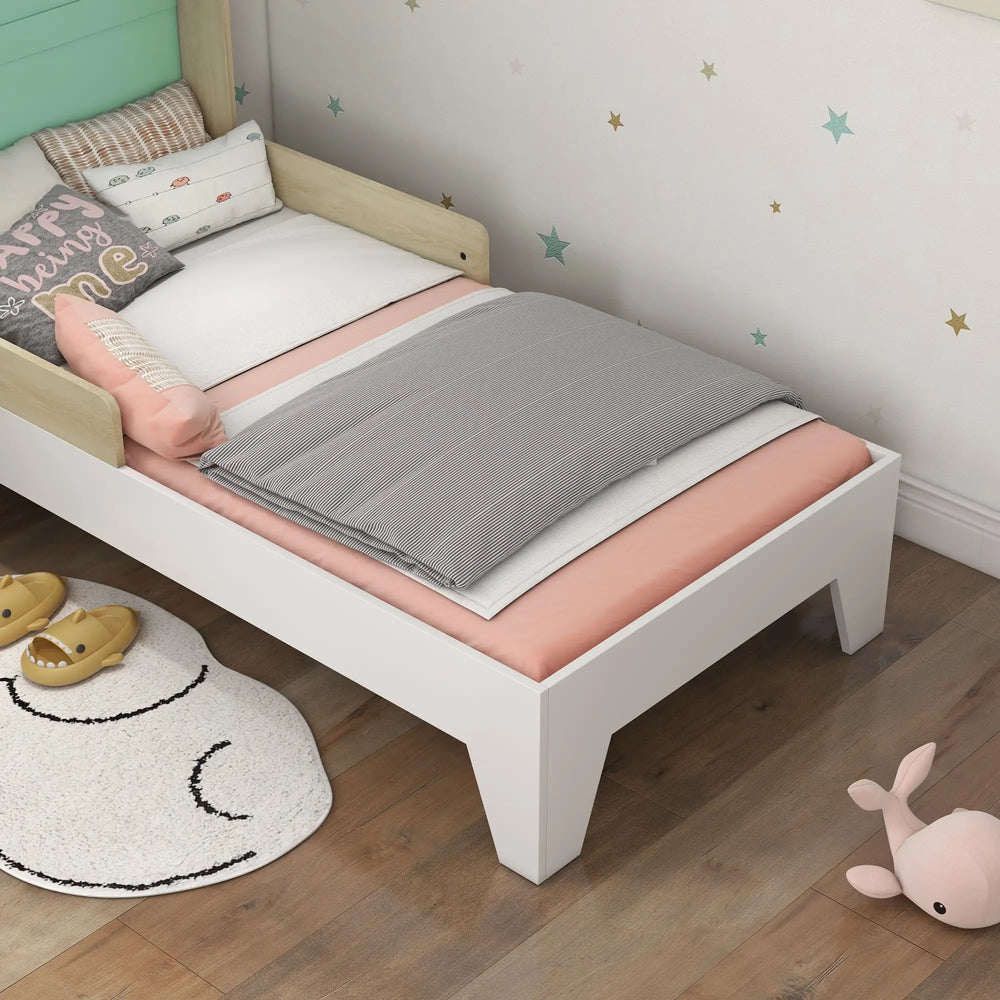 Send your little ones off to dreamland in the AIYAPLAY toddler bed. They'll enjoy a good night's sleep with complete safety, thanks to the stable MDF structure and guardrails on either side. A charming addition to their bedroom, its vibrant treehouse design adds a colourful touch. Low to the ground, it's easy for kids to get on and off without help. Suitable for toddlers, it helps them get used to sleeping independently and can be used for years to come.