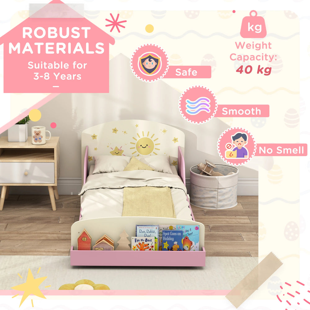 AIYAPLAY Toddler Bed with Storage, Guardrails, Sun Design, for Ages 3-8 Years, Fits 140 x 70cm Mattress,