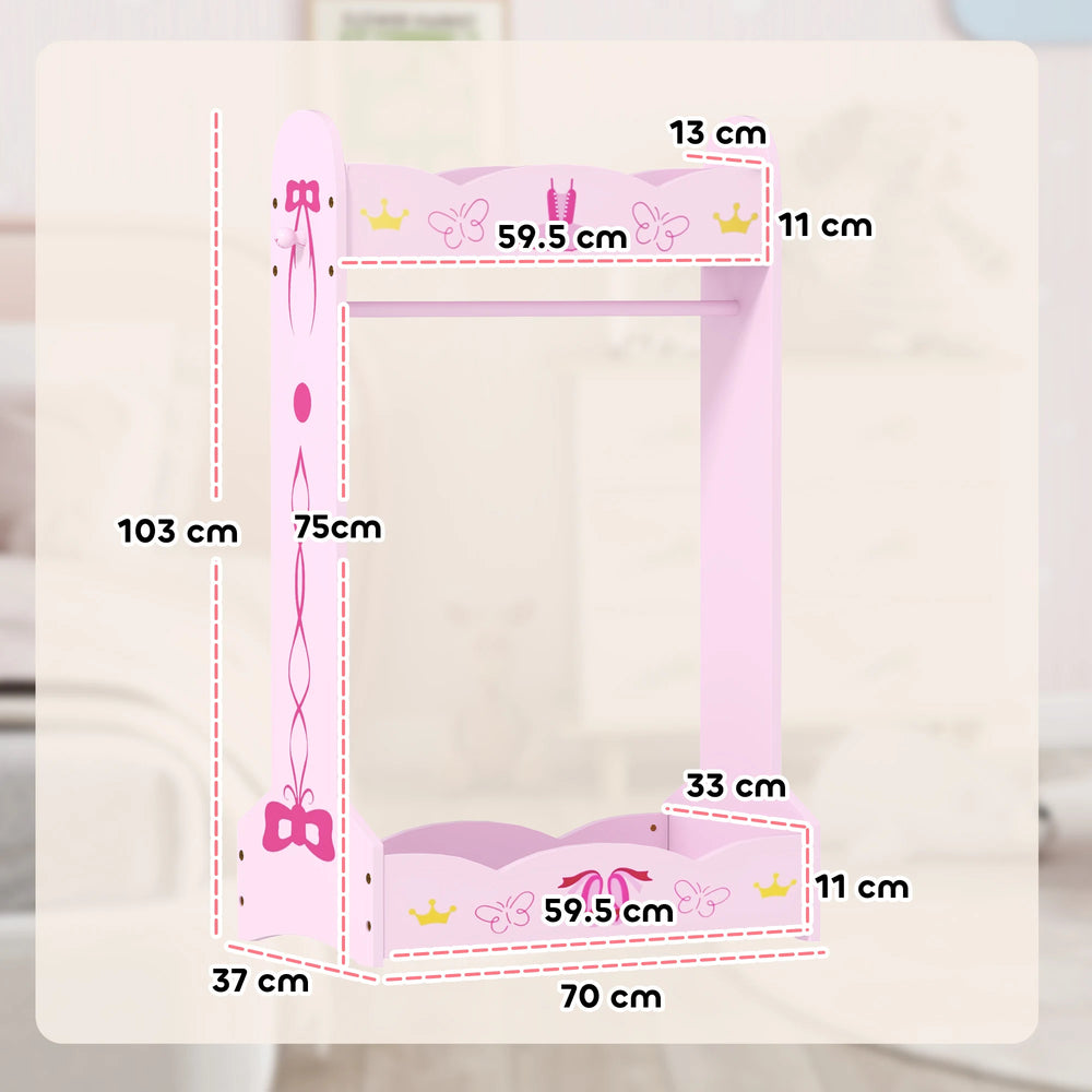 AIYAPLAY Kids Clothes Rail with Two Shelves, for 3-8 Years, Pink