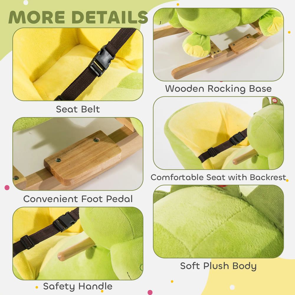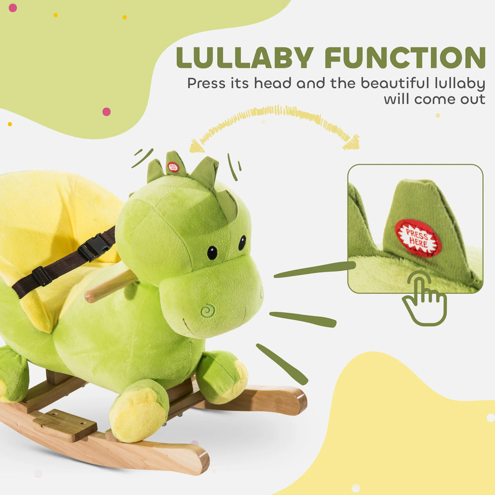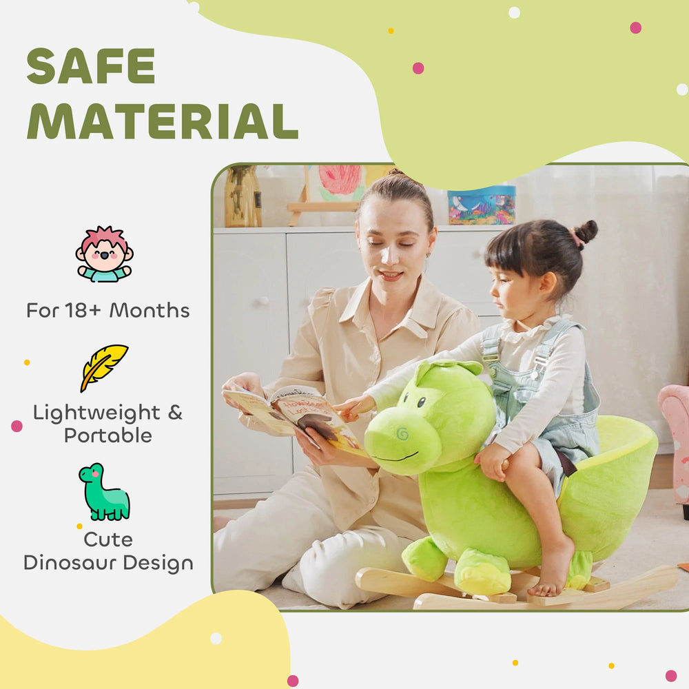 HOMCOM Kids Rocking Horse, Plush Ride-On Dinosaur Seat, with Seat Safety Belt, 32 Songs, Ride-On Horse