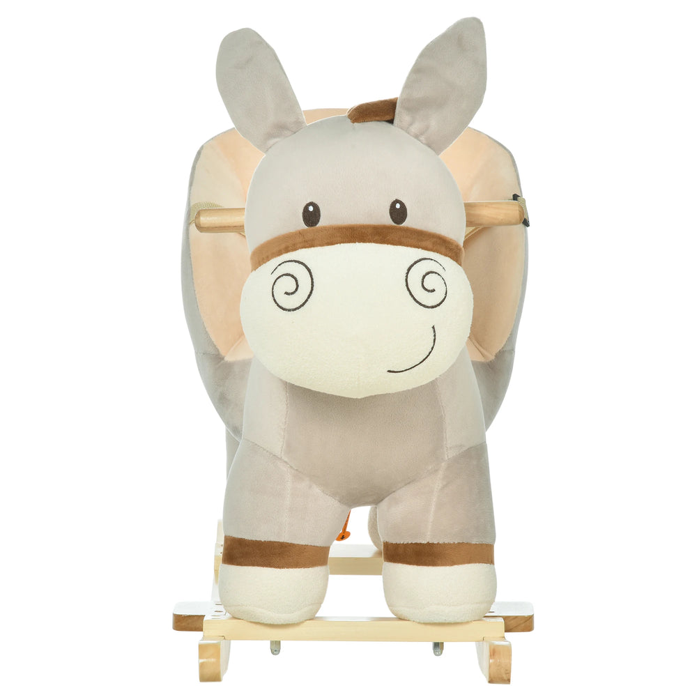 HOMCOM Kids Rocking Horse, Children Plush Ride On Donkey Animal Rocker w/ Sound, Wood Base Seat, Safety Belt, Baby Toy Rocker for Toddler 18 - 36 Months, Grey is backordered and will ship as soon as it is back in stock.