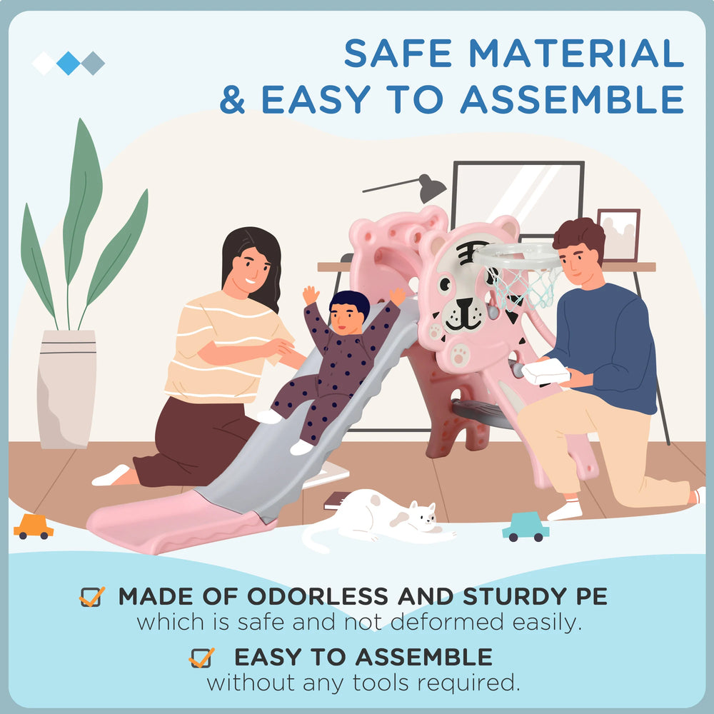 AIYAPLAY 3 in 1 Baby Slide for Indoor Use with Climber, Basketball Hoop, Basketball, for Ages 18-36 Months - Pink