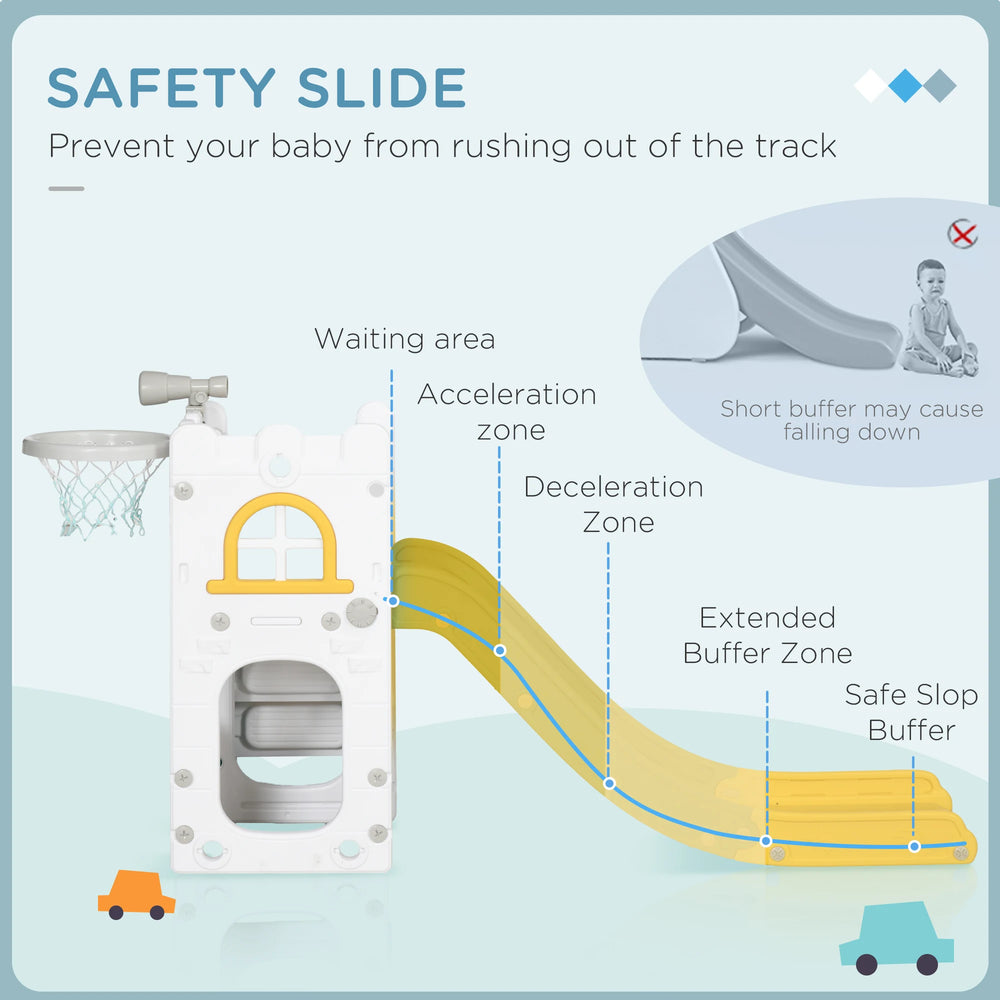 AIYAPLAY 5 in 1 Toddler Slide with Basketball Hoop, Climber, Telescope, Storage Basket, for Ages 1-3 Years, Yellow