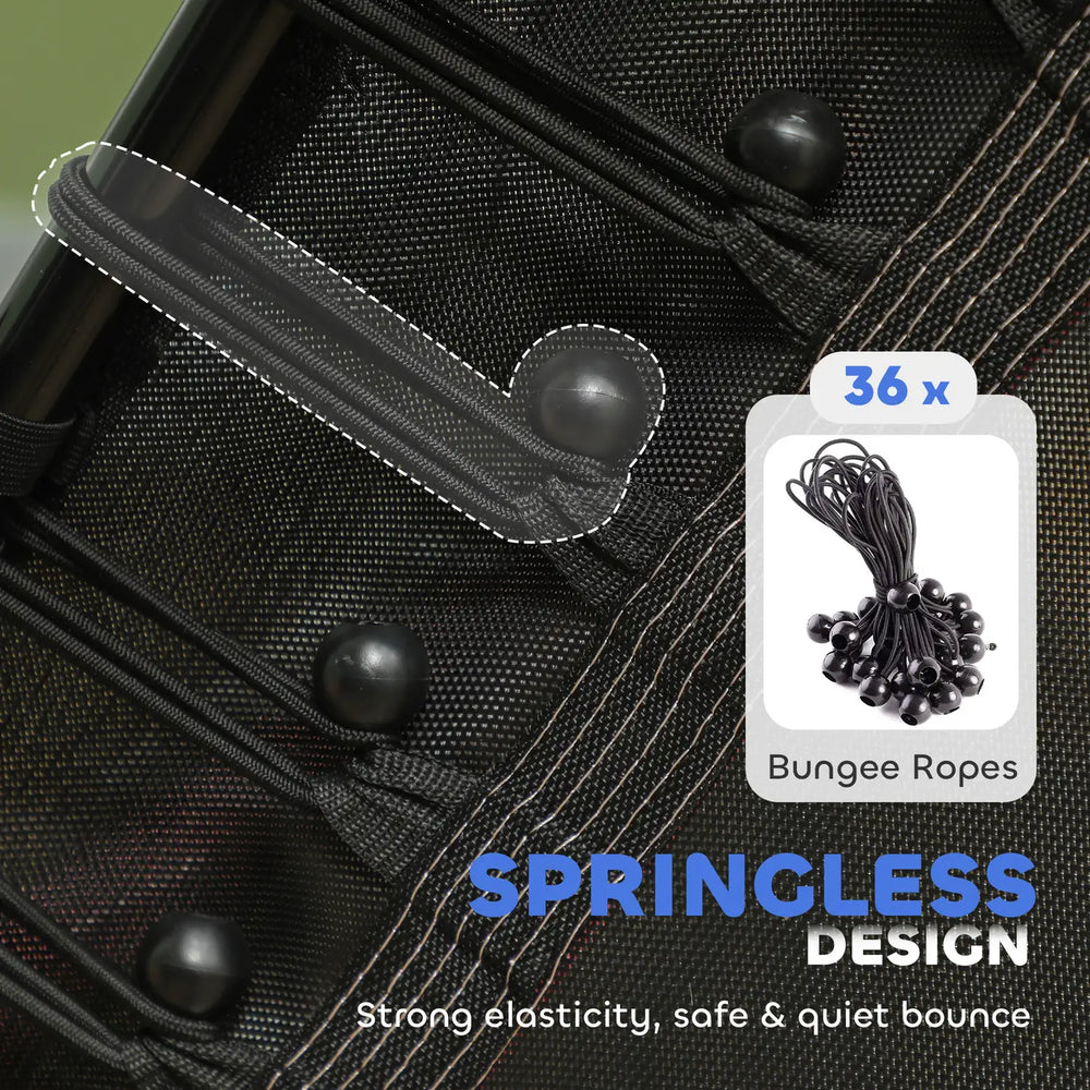 Enjoy hours of jumping joy with the HOMCOM kids trampoline suitable for ages 310 years. It's a fun and active way to keep little ones entertained. Built with a strong, powder-coated steel frame, this trampoline is stable and secure. Safety comes first with the enclosed mesh net and padded poles to help prevent falls, while the bungee cord design replaces metal springs, so there are no sharp parts sticking out. Lightweight and easy to move, it's great for both indoor and outdoor play.