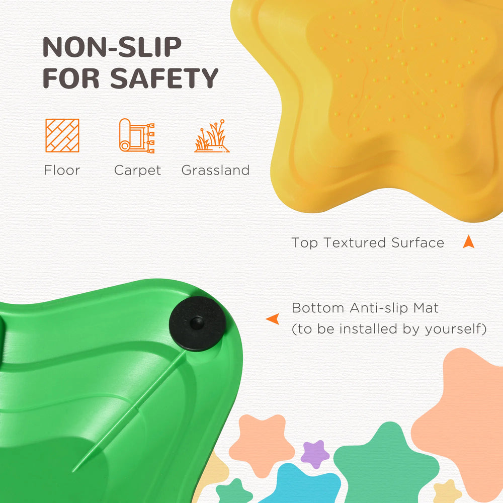 - Safe to use: Each stepping stone features a textured surface on the top and starfish-shaped ones with rubber footings to prevent slipping. Made from strong material, can withstand children up to 80kg.