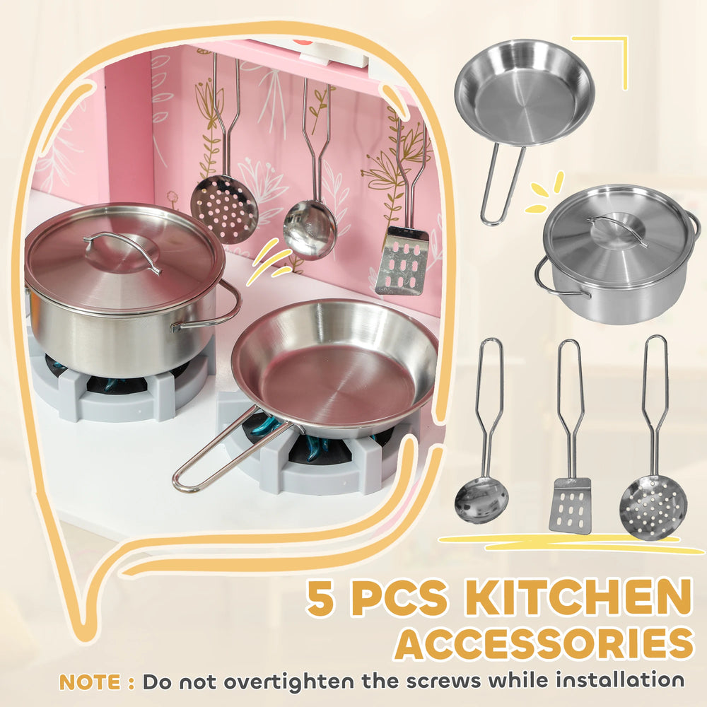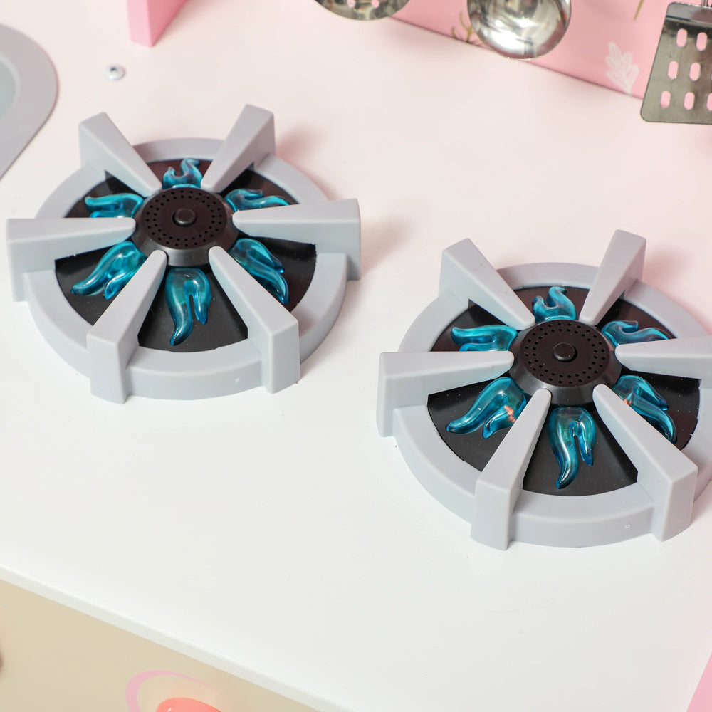 - Interactive cooking experience: With two stoves featuring light and sound functions, this kids kitchen set brings imaginary dishes to life, offering an engaging culinary experience.