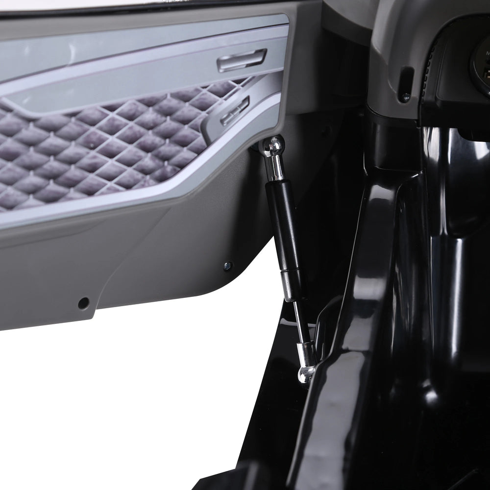 - Front and back LED lights, MP3 player and horn for a fun and realistic drive