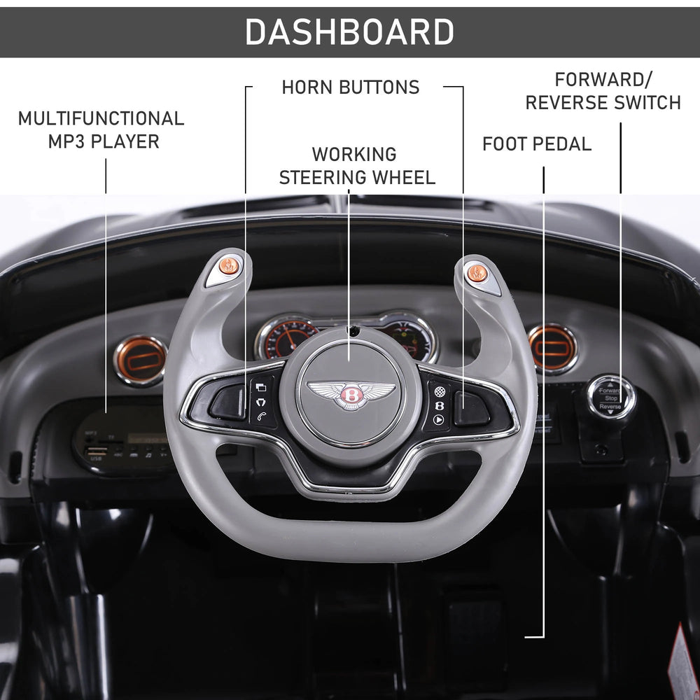 HOMCOM Bentley GT Licensed 12V Electric Car for Kids, Kid's Electric Ride on with Remote Control, Ride on Car with LED Lights, Music, for 3-5 Years, Black