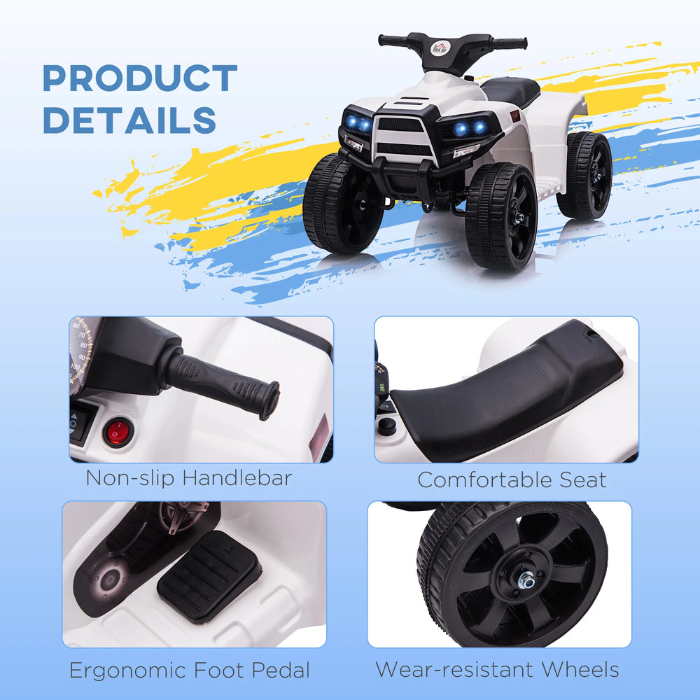 HOMCOM 6V Kids Electric Ride on Car, ATV Toy, Quad Bike with Headlights, Horn, for Toddlers 18-36 Months White