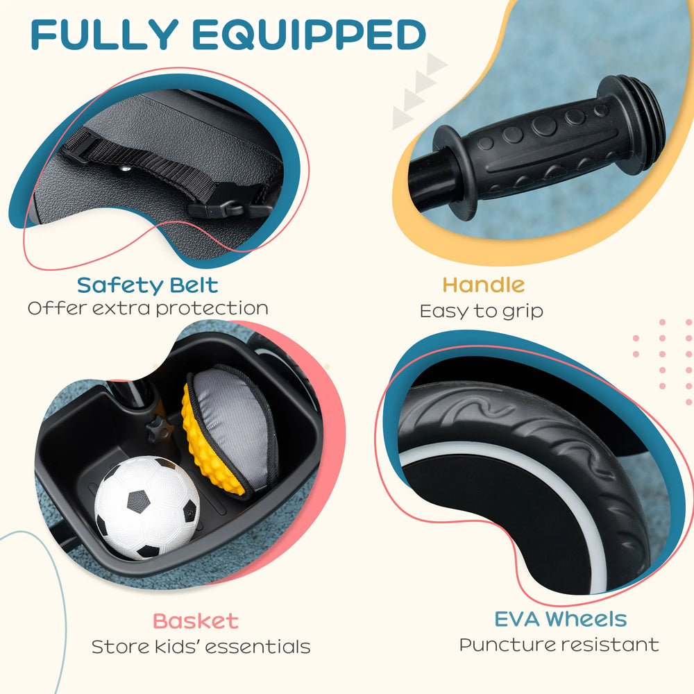 AIYAPLAY Kids Trike for 2-5 Years with Adjustable Seat, Pedal, Baskets, Black
