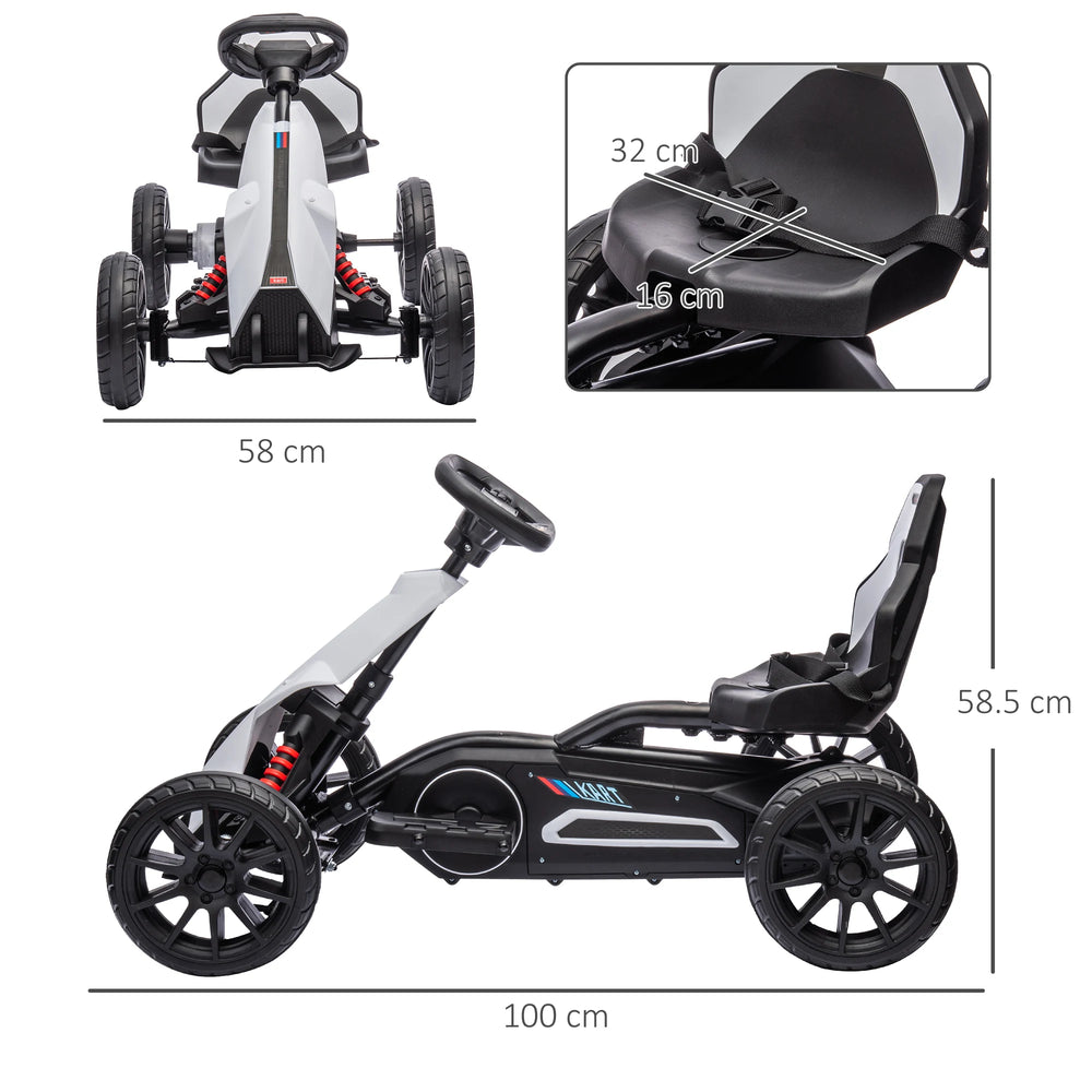 HOMCOM 12V Electric Go-Kart for Kids, Ride-On Racing Go-Kart, with Forward and Reversing Functions, for Ages 3-8 Years - White