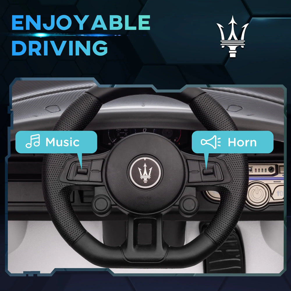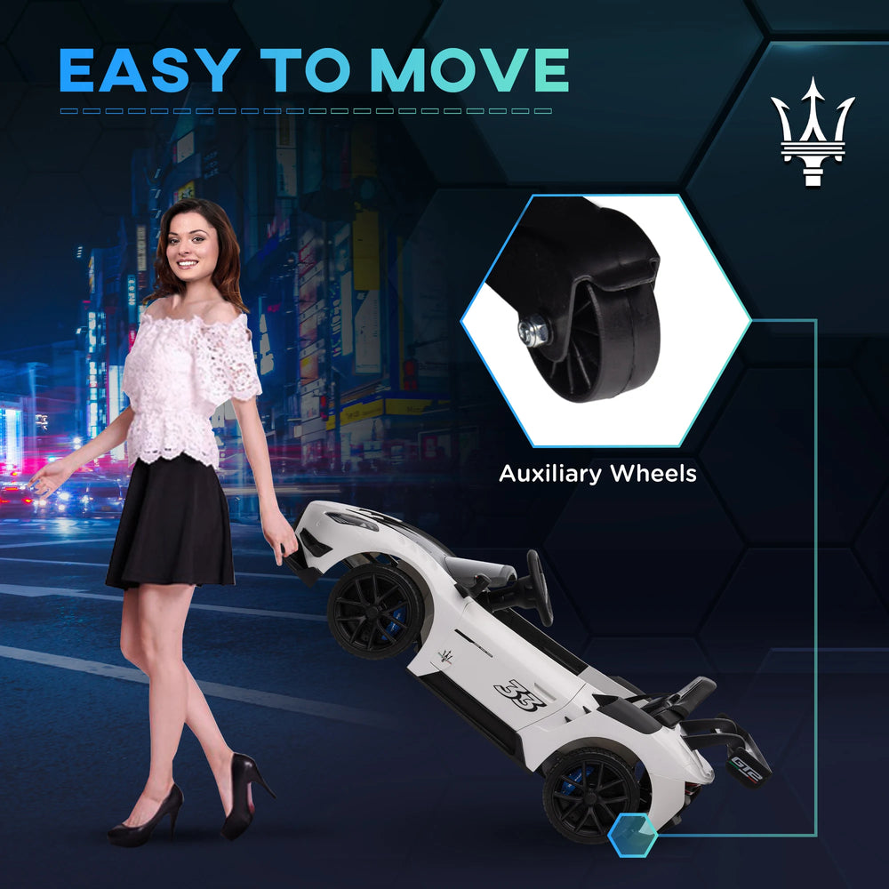 AIYAPLAY Maserati GT2 Licensed 12V Kids Electric Ride on Car with 4 Suspension Wheels, Remote Control, Music, Horn, Lights, White