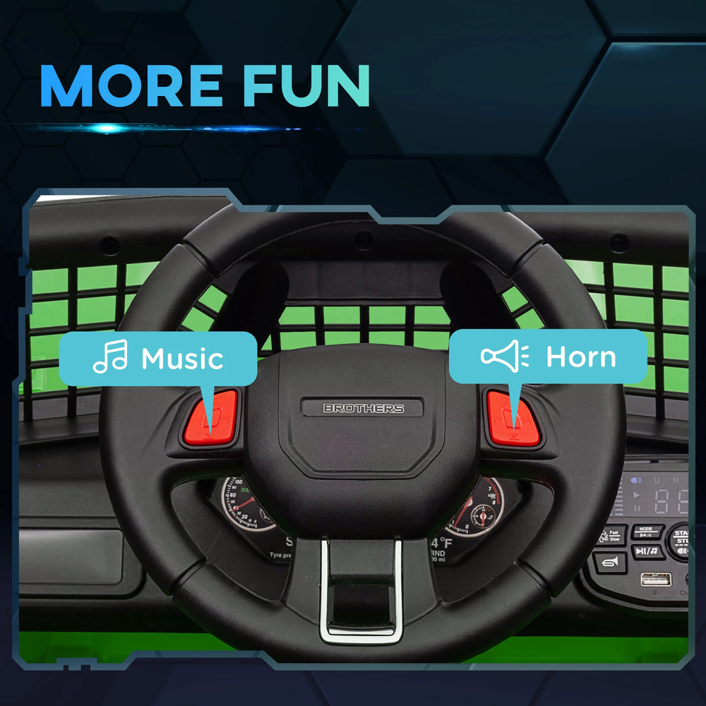 AIYAPLAY 12V Battery Powered Kids Ride-On Car, Electric Truck w/ Spring Suspension, Remote, Music, Horn, Lights, Green
