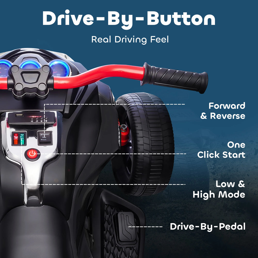 - Fun-filled features: Front and rear LED lights improve visibility, while built-in music with USB input keeps every journey exciting and entertaining on the kids quad bike.
