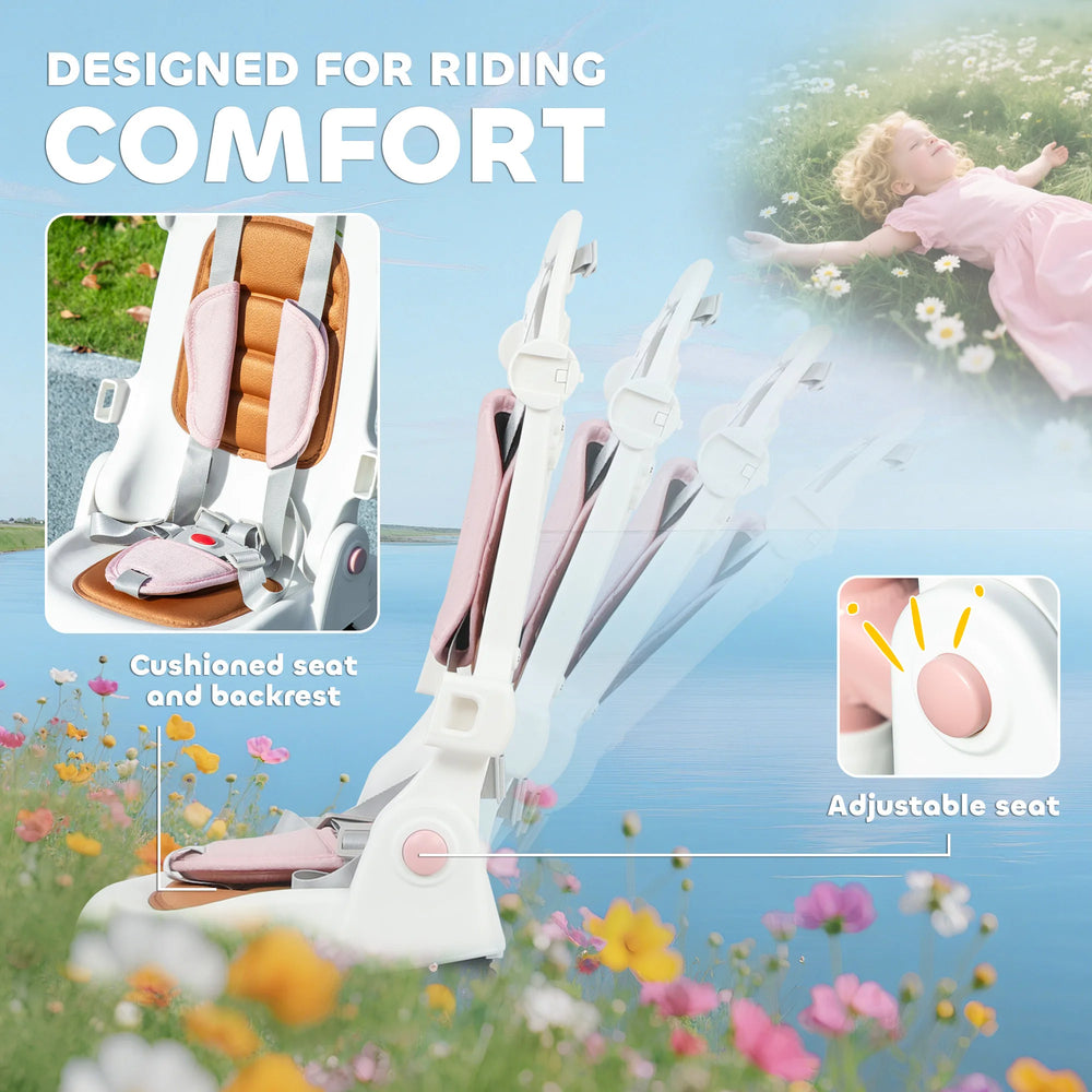 AIYAPLAY 5 in 1 Kids Trike with Adjustable Backrest, Toddler Tricycle with Push Handlebar, Adjustable Backrest, Pink