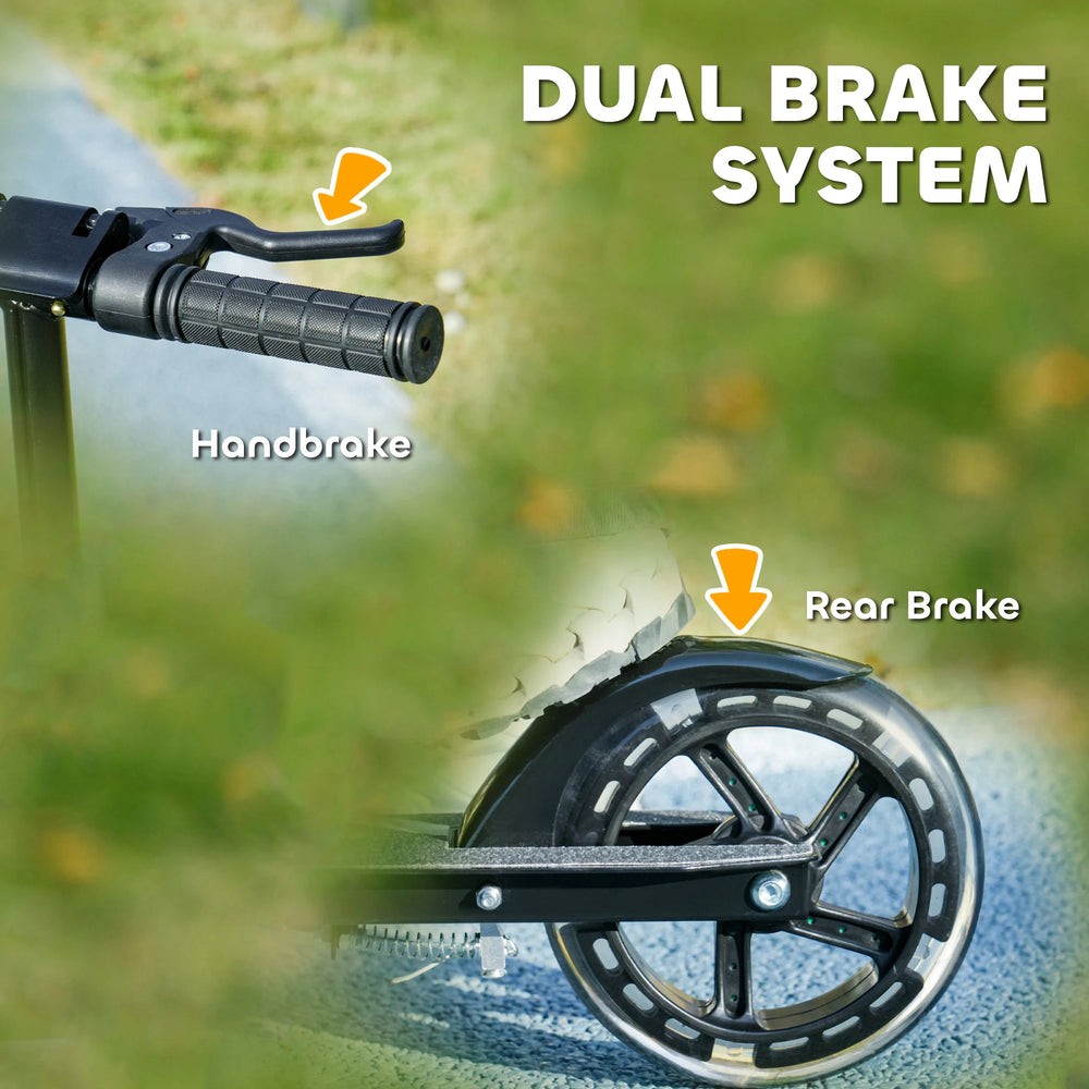 - Safe brakes: Featuring both a rear brake and a handbrake, this scooter offers dual braking for maximum control and quick, easy stops.