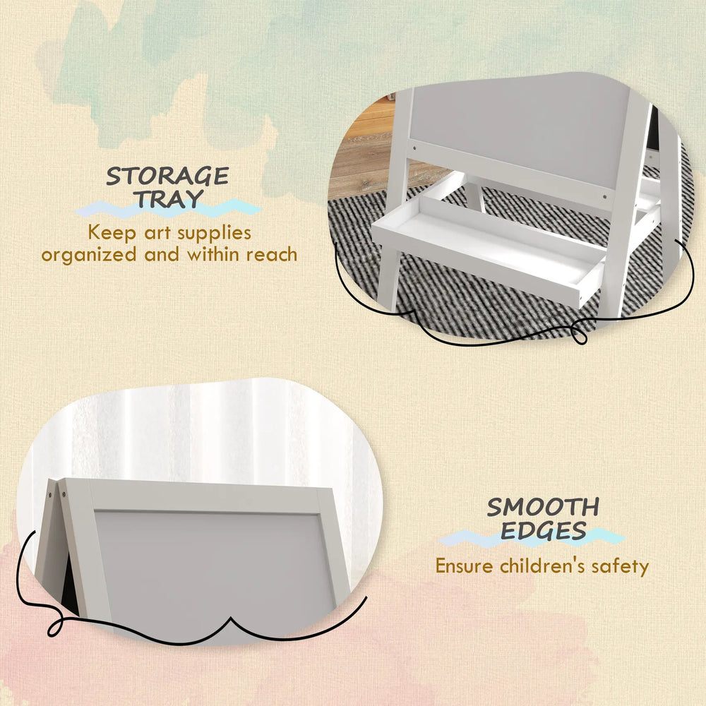 Ignite your child's passion for art and provide them with a platform to express their creativity with the kids easel from AIYAPLAY. Designed with little artists in mind, it combines functionality and safety to make art accessible and enjoyable for children. With its dual-sided design featuring a kids chalkboard and a kids whiteboard, this blackboard for kids offers a world of artistic possibilities for your children to explore. Let their artistic journey begin!
