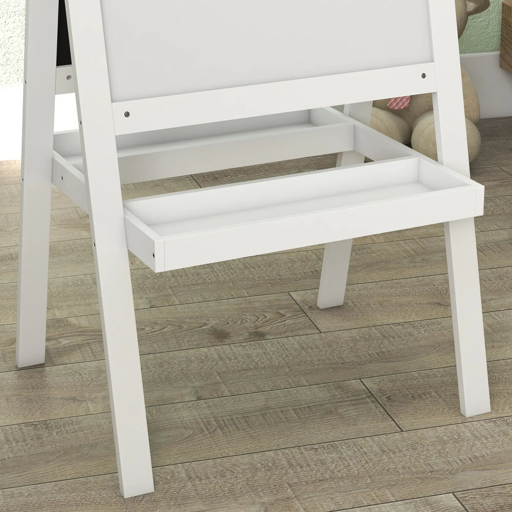 AIYAPLAY Kids Easel, Art Easel with Double Sided Whiteboard, Chalkboard, Storage, 2 in 1 Standing Easel for Toddlers 18-48 Months, White