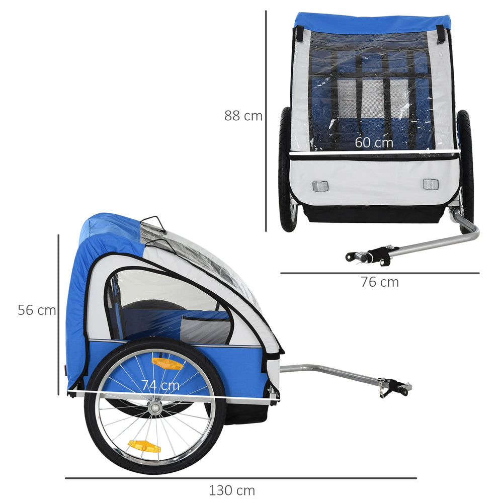 HOMCOM 2 Seat Bike Trailer Bicycle wagon for Kids Child Steel Frame Safety Harness Seat Carrier Hitch Coupler Blue White 130 x 76 x 88 cm