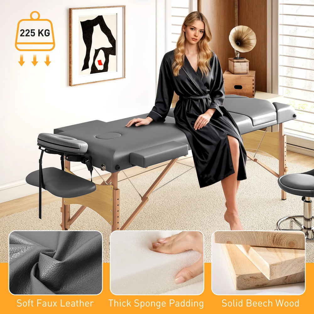 - Wooden base: A naturally strong and supportive lower to this massage table