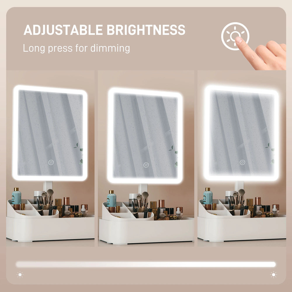 Light up your beauty routine with the HOMCOM Vanity Makeup Mirror! Toggle between warm (3500K) and cool (7000K) lighting with a simple touch and long-press to adjust brightness. Its 180-degree rotation offers a great angle for any look. Plus, keep your beauty essentials organised with the built-in storage box. This makeup mirror is an excellent blend of function and flair for your dressing table.