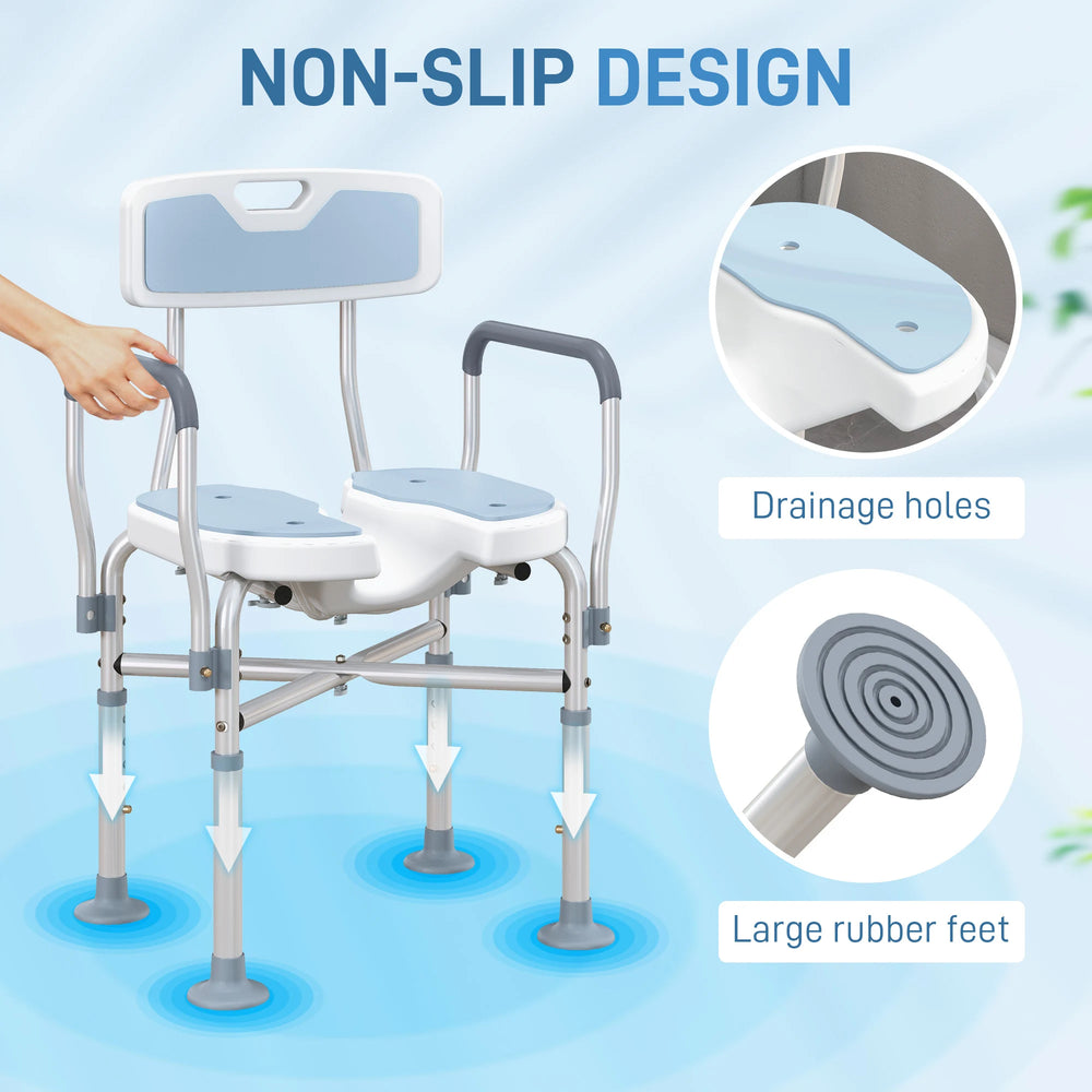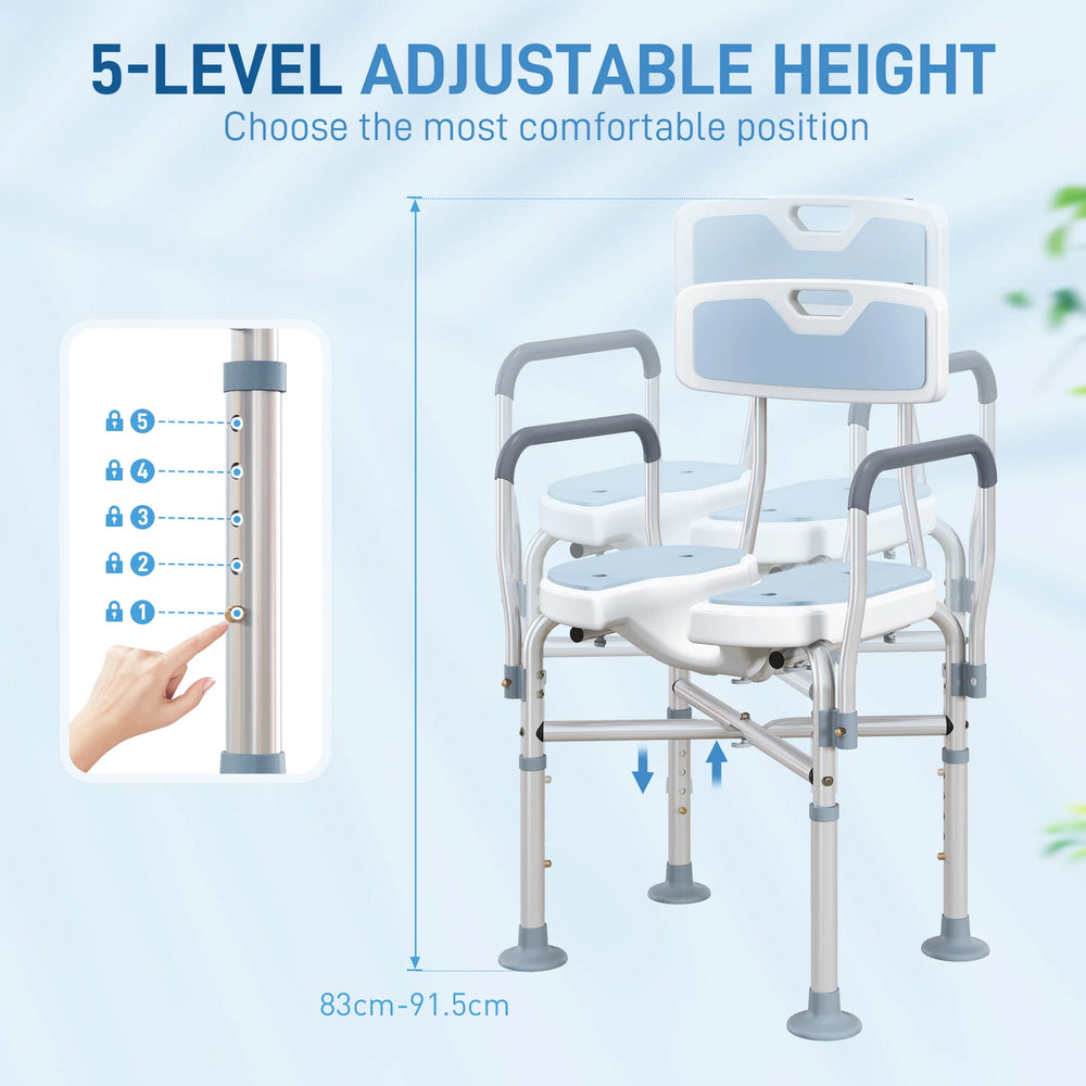 This HOMCOM shower chair is a safe and comfortable piece, made for those who require showertime assistance, such as the elderly, disabled and injured. It includes a deep central slot for easy and effective cleaning access and paddings on the seat and back for added comfort. Five-level seat heights also provide different options for users of different heights. Experience safe, comfortable and effortless bathing with the HOMCOM bathing chair.