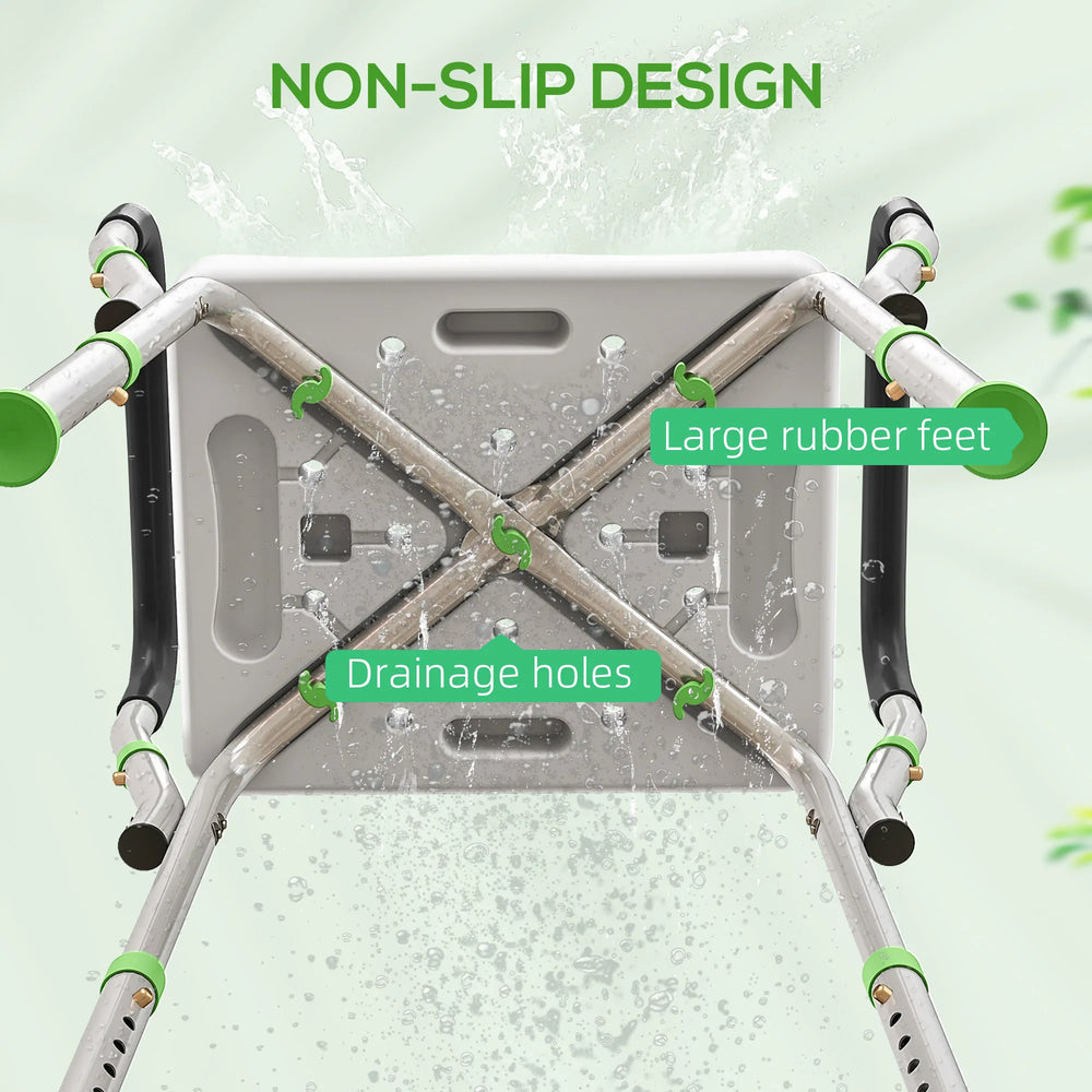 Sit safely in comfort with this HOMCOM adjustable shower seat. The height is adjustable between 57-69cm - set it to the position best for you. The aluminium frame is a strong core to support you fully, fitted with a comfortable EVA pad seat. Complete with non-slip feet for safety.
