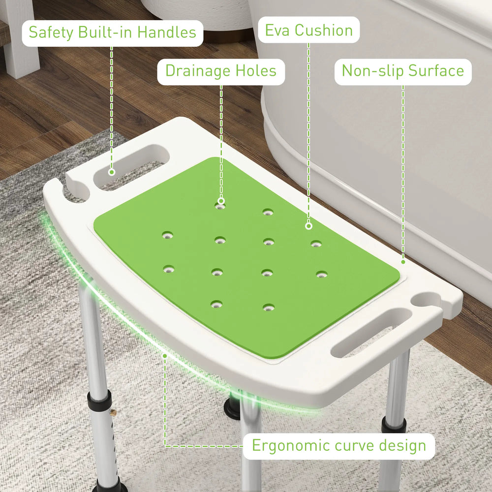 HOMCOM Shower Chair, Adjustable Height Shower Stool with Aluminium Frame and Non-Slip Feet, Bathtub Stool Seat for Elderly Disabled Handicap, Green