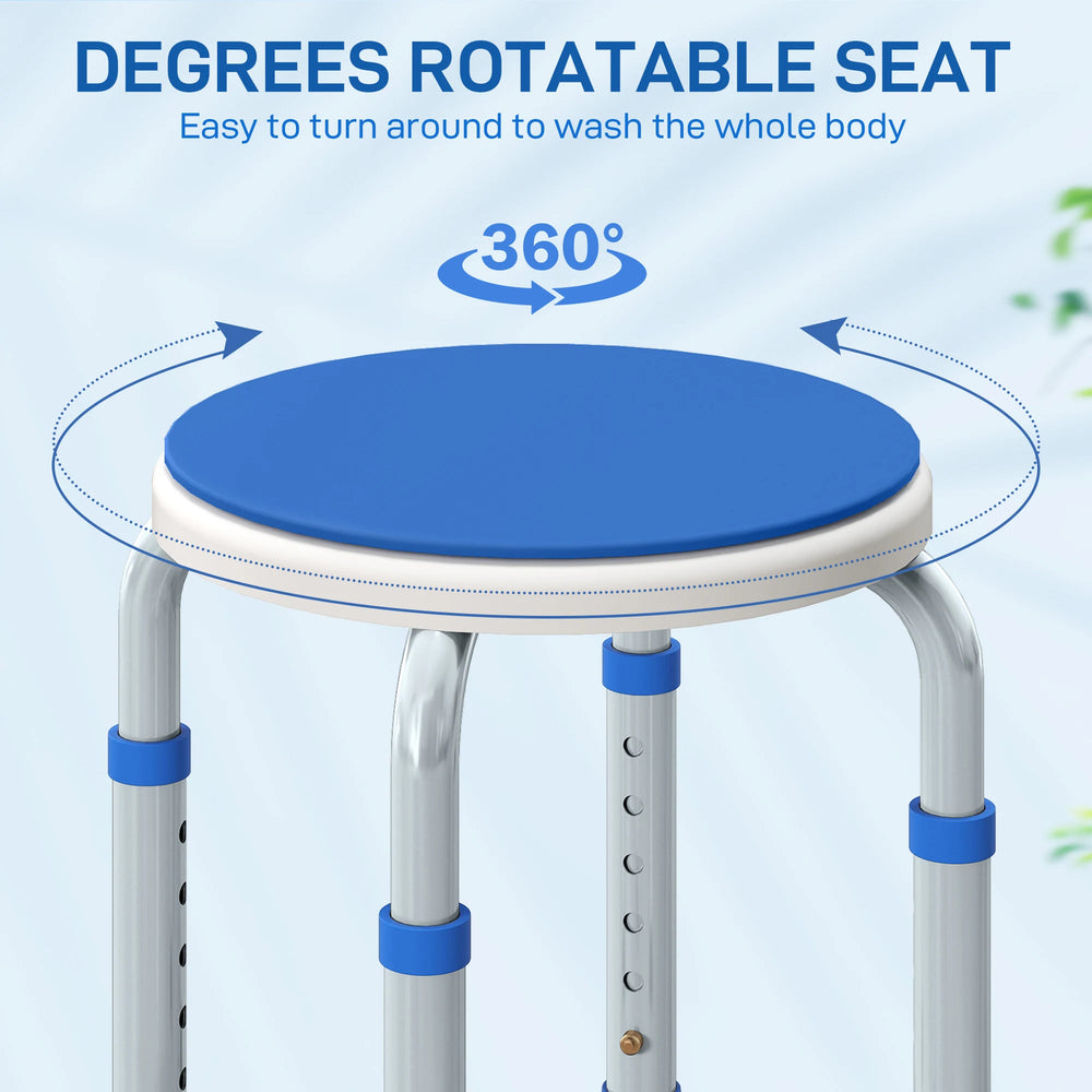 HOMCOM 360 Swivel Shower Chair, Height Adjustable Aluminium Shower Stool with Non-Slip Feet for Disabled, Elderly, Blue