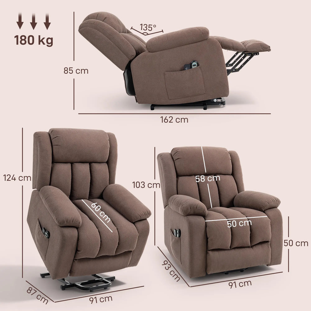 HOMCOM Eight-Point Massage Electric Lift Chair - Dark Brown