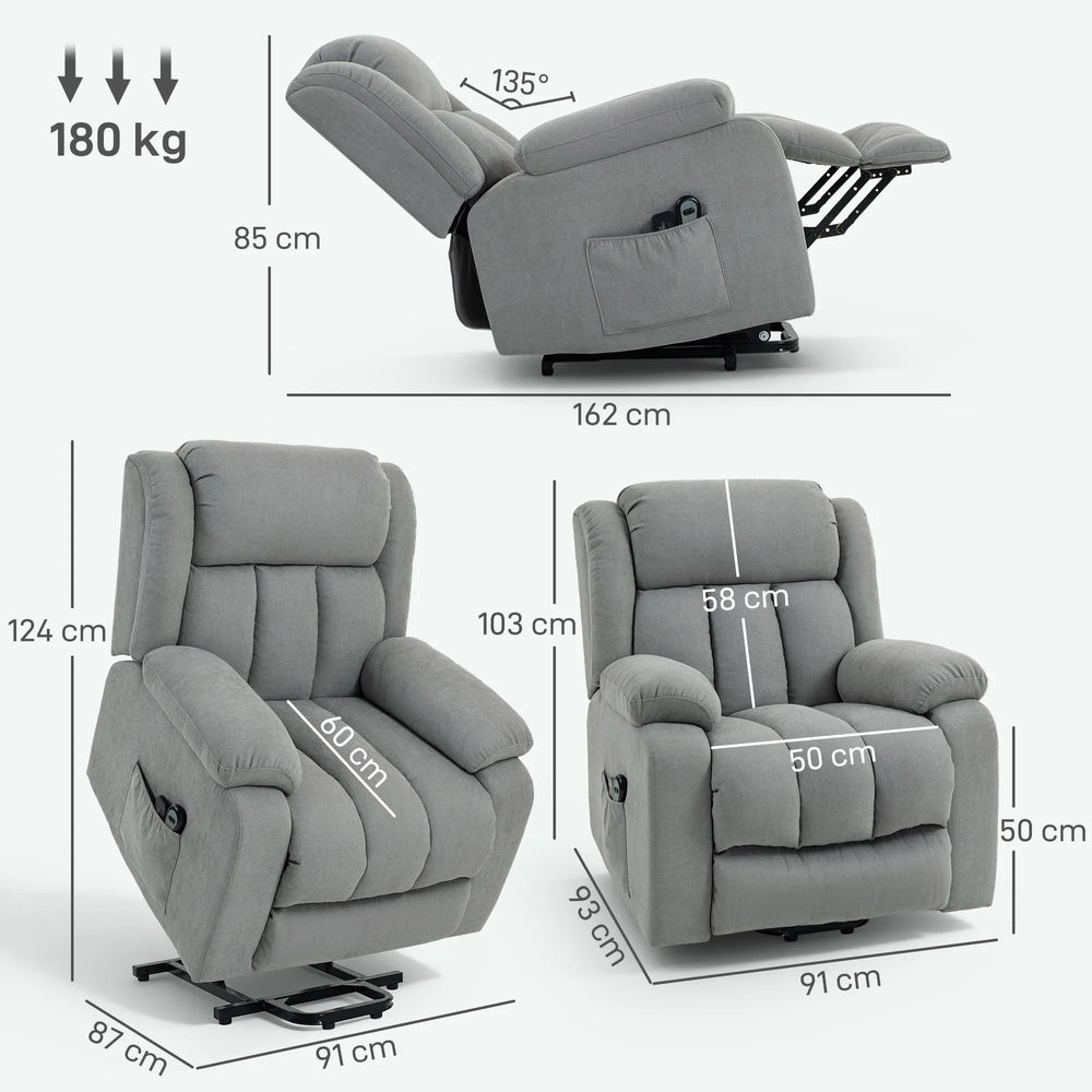 HOMCOM Eight-Point Massage Electric Lift Chair - Light Grey