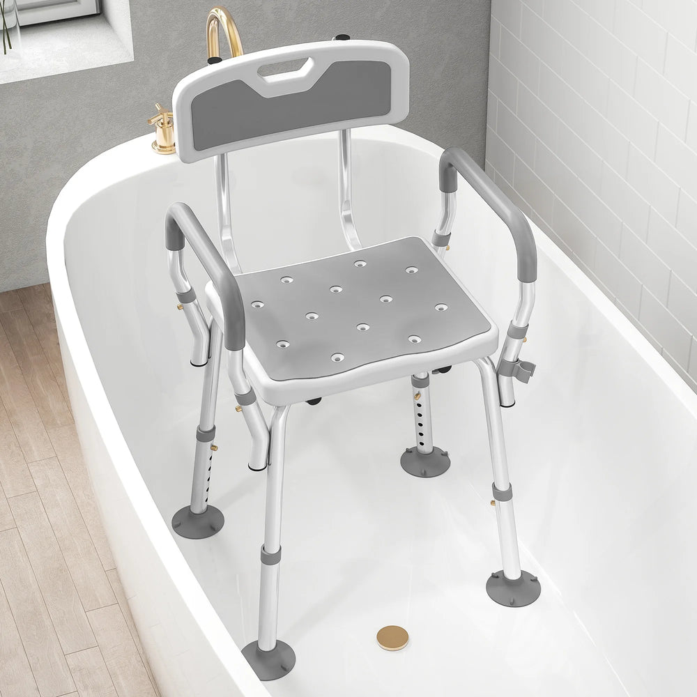 HOMCOM EVA Padded Shower Chair for the Elderly and Disabled, Height Adjustable Shower Stool with Back and Arms, 4 Suction Foot Pads, Light Grey