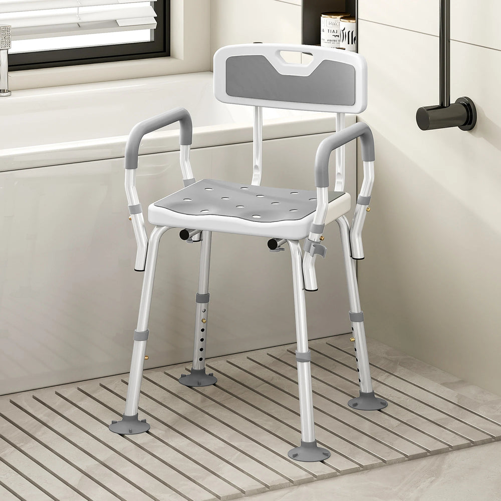 HOMCOM EVA Padded Shower Chair for the Elderly and Disabled, Height Adjustable Shower Stool with Back and Arms, 4 Suction Foot Pads, Light Grey is backordered and will ship as soon as it is back in stock.