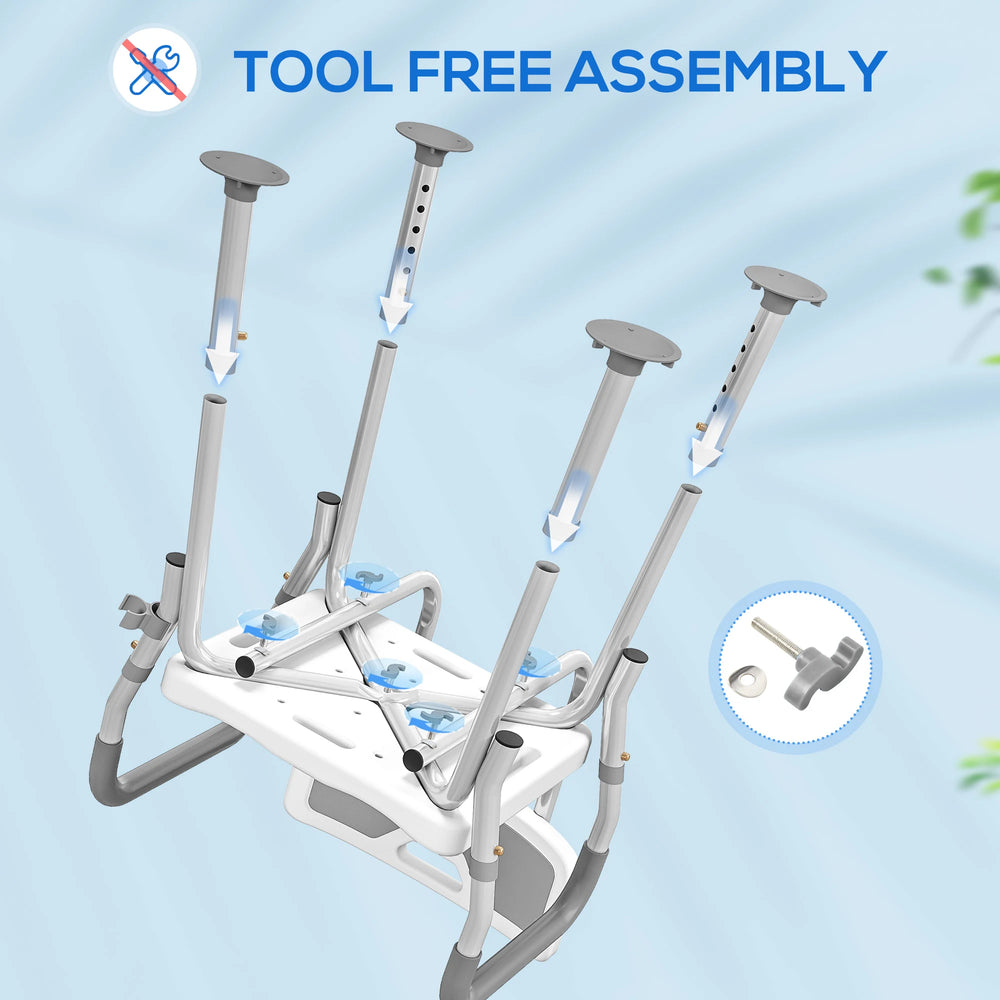 - Aluminium frame: Bath stool with a strong, steady core for secure seating, plus tall arms for safe leverage when standing.
