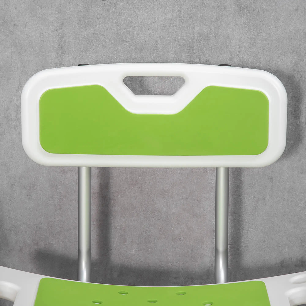 HOMCOM Shower Stool with Backrest, Height Adjustable Shower Chair with Anti-slip Foot Pads, Shower Head Holder, Green