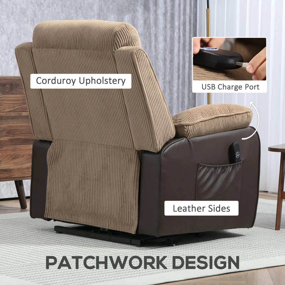 HOMCOM Power Lift Recliner Chair for Elderly, Patchwork Design Oversized Electric Riser and Recliner Armchair for Living Room with Remote Control, USB Port and 2 Side Pockets, Brown is backordered and will ship as soon as it is back in stock.