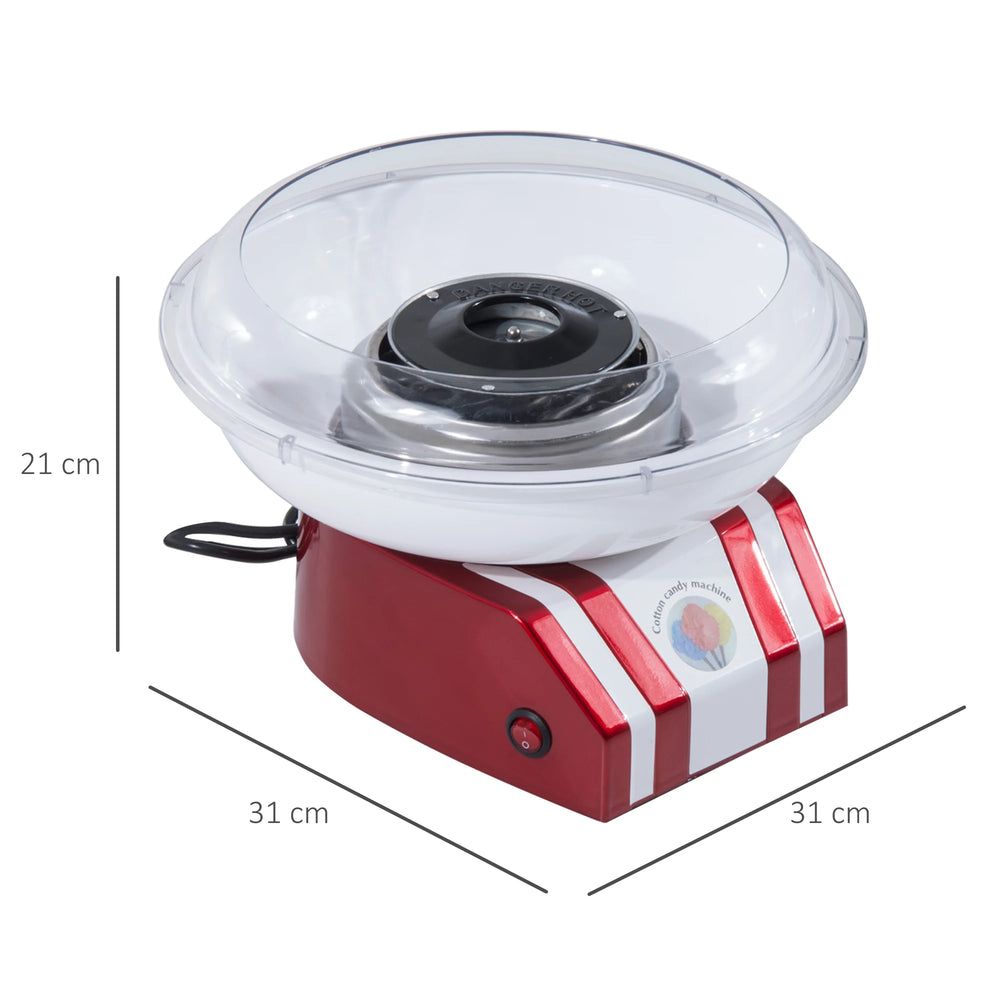 HOMCOM Candy Floss Machine for Kids & Adults, 550W Retro Cotton Maker for Sugar or Candies, Including 10 Candyfloss Sticks, Non-Slip Base, Red & White