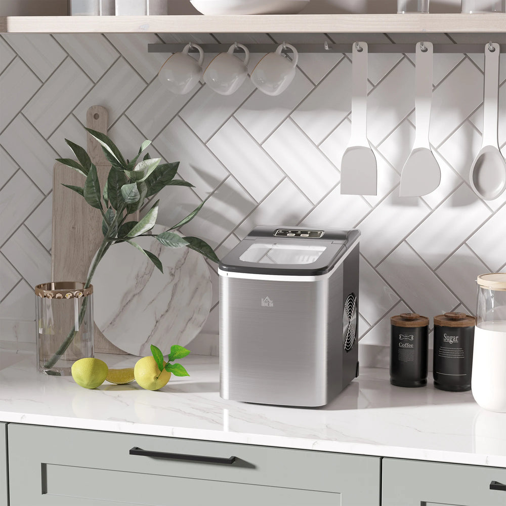 HOMCOM Ice Maker Machine Countertop, 9 Ice Cubes in 8 Mins, 12KG in 24Hrs, Self-Cleaning Portable Ice Cube Maker w/ Adjustable Ice Size, Ice Scoop, Basket, Stainless Steel, No Plumbing Required, Black