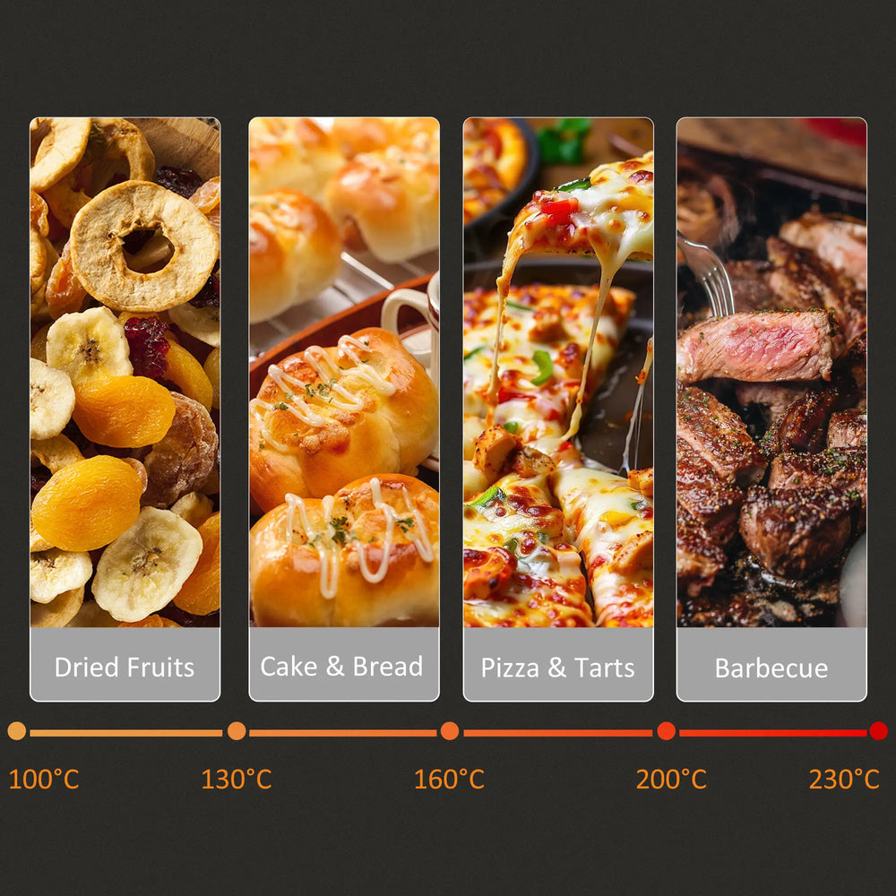 - 100C-230C adjustable temperature. Heat source can be changed between top, bottom, or both directions