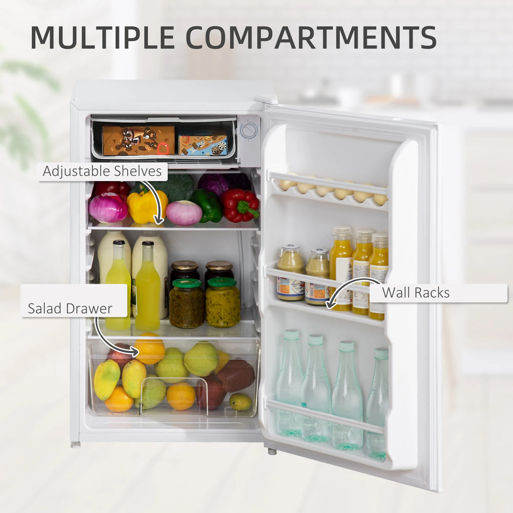 HOMCOM 91 Litre Freestanding Under Counter Fridge Freezer, Small Fridge with Chiller Box, Adjustable Thermostat, 47.5cm Wide, White