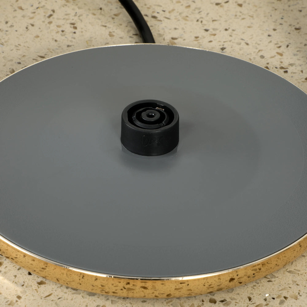 - Kettle has three safety features: automatic shut-off, overheat and dry boil cut-off protection