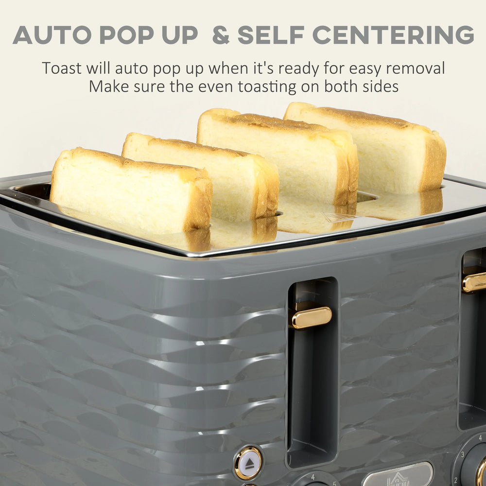 HOMCOM Kettle and Toaster Sets, 3000W 1.7L Rapid Boil Kettle & 4 Slice Toaster with 7 Browning Controls, Defrost, Reheat and Crumb Tray, UK Otter thermostat, Grey