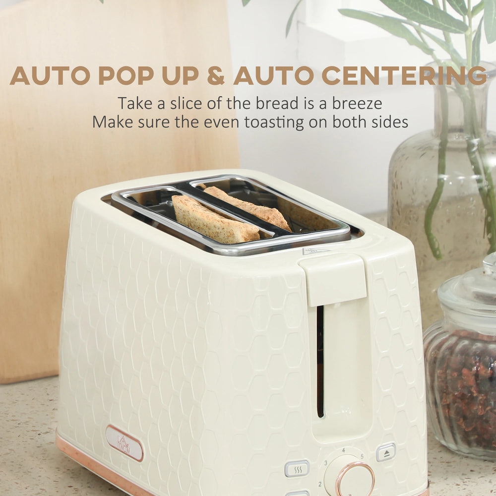 HOMCOM 1.7L 3000W Fast Boil Kettle & 2 Slice Toaster Set, Kettle and Toaster Set with Auto Shut Off, Browning Controls, Beige