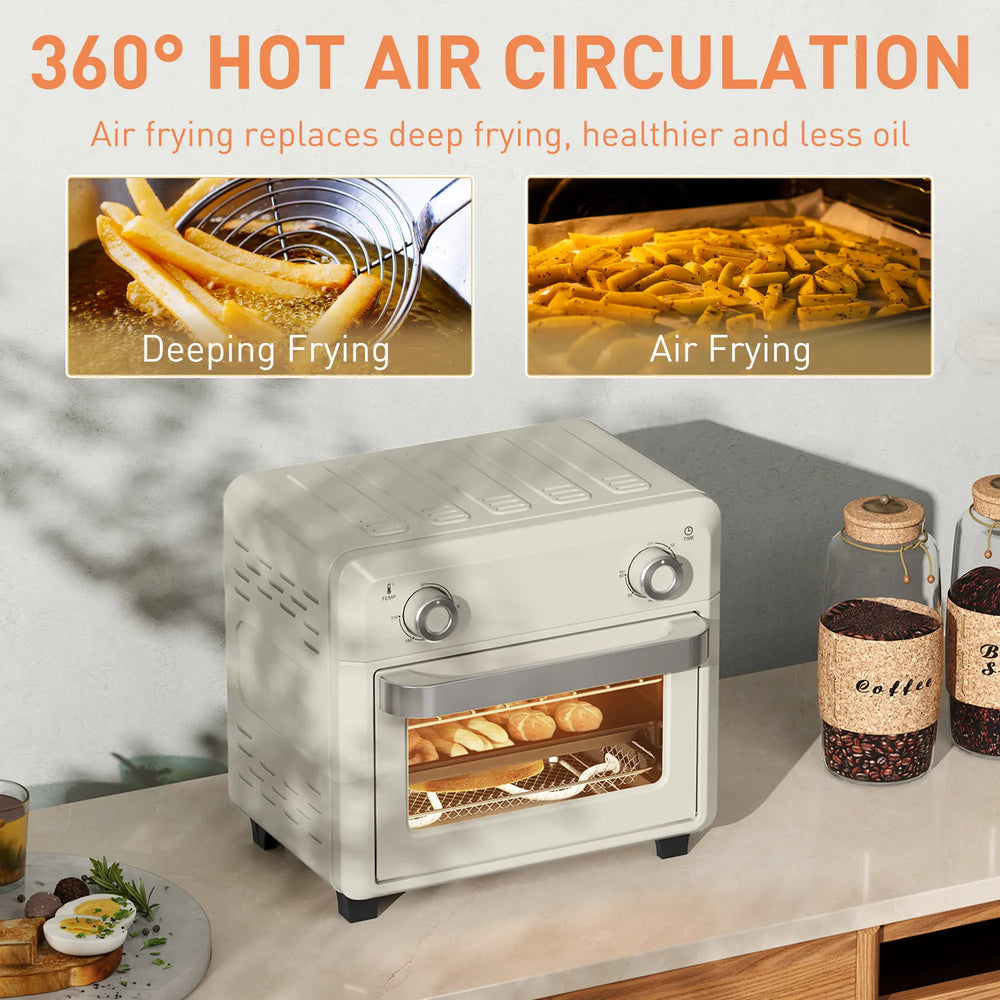HOMCOM 10L Air Fryer Oven, Mini Oven, Oil Free Cooking, Grill, Roast, Bake, with Adjustable Temperature, Timer, Dishwasher Safe, 1000W, Cream White